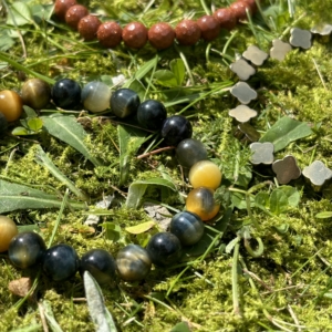 A Dream Tiger’s Eye bracelet with golden and deep greyish green tones offers a mesmerizing blend of earthy elegance and protective energy. This variation of Tiger’s Eye, with its rich colors, carries both the grounding qualities of the stone and a soothing, balancing effect.