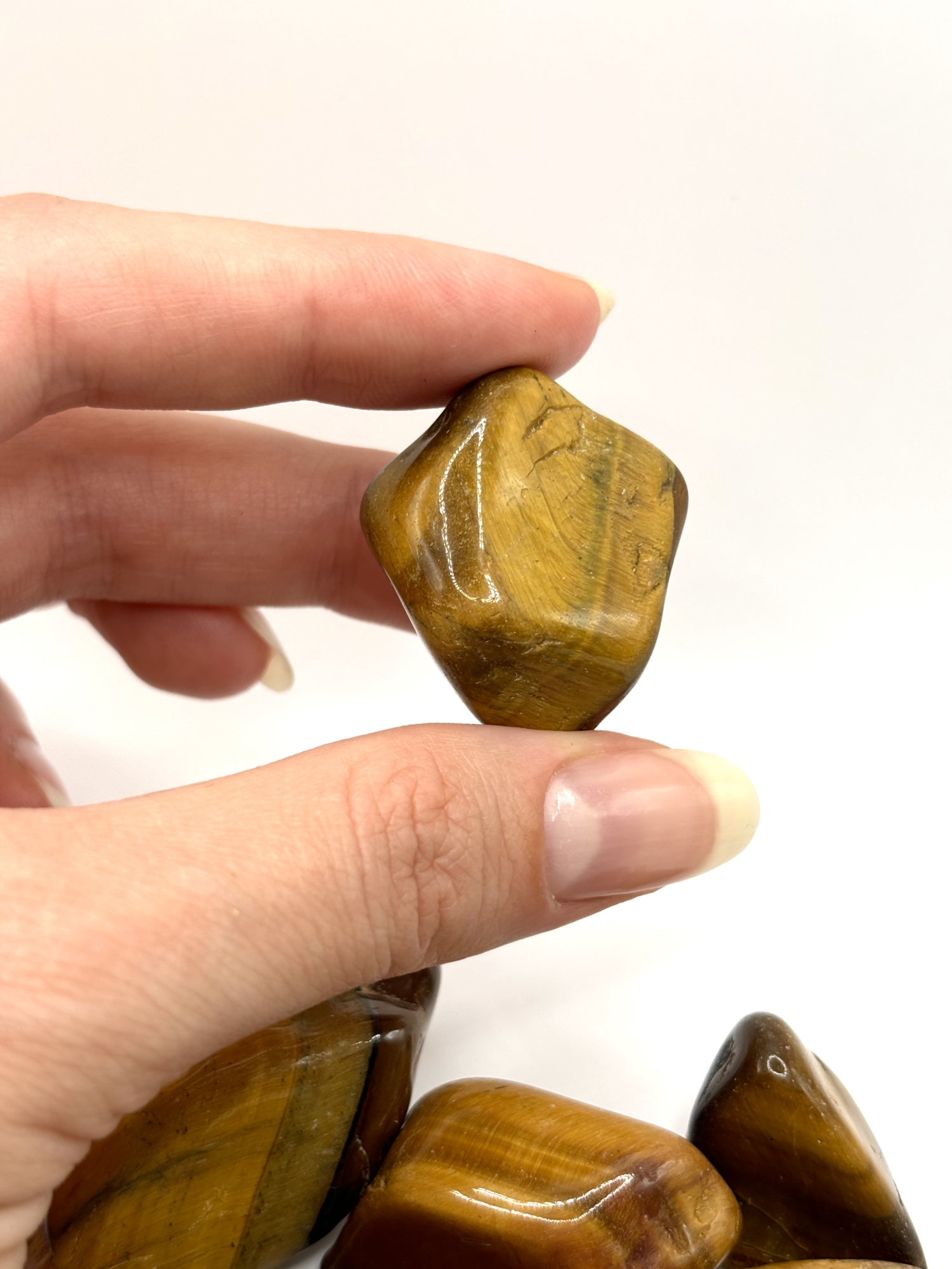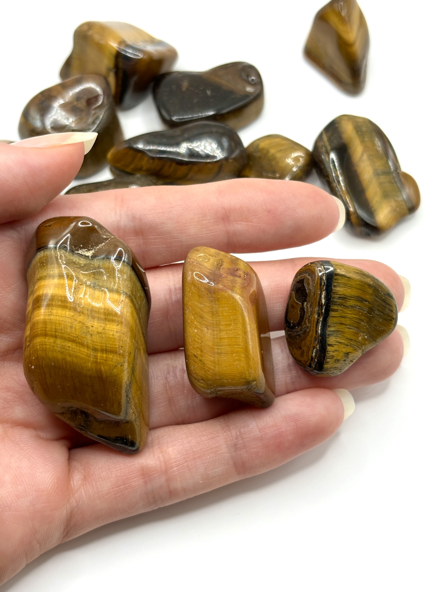 Golden Tiger’s Eye, African tumble stones, are known for their captivating golden-brown hues and shimmering bands. This stone is cherished for its ability to bring courage, confidence, and protection, making it a powerful addition to any crystal collection.