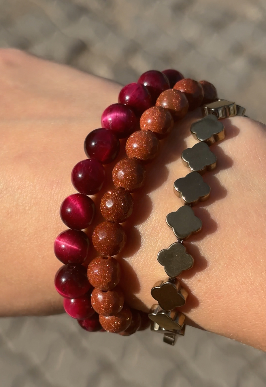 A Pink (Magenta) Tiger’s Eye stone bracelet is a vibrant and eye-catching piece of jewelry with a bold energy. Its rich pink or magenta tones combine the protective qualities of Tiger’s Eye with a boost of passion and self-expression.