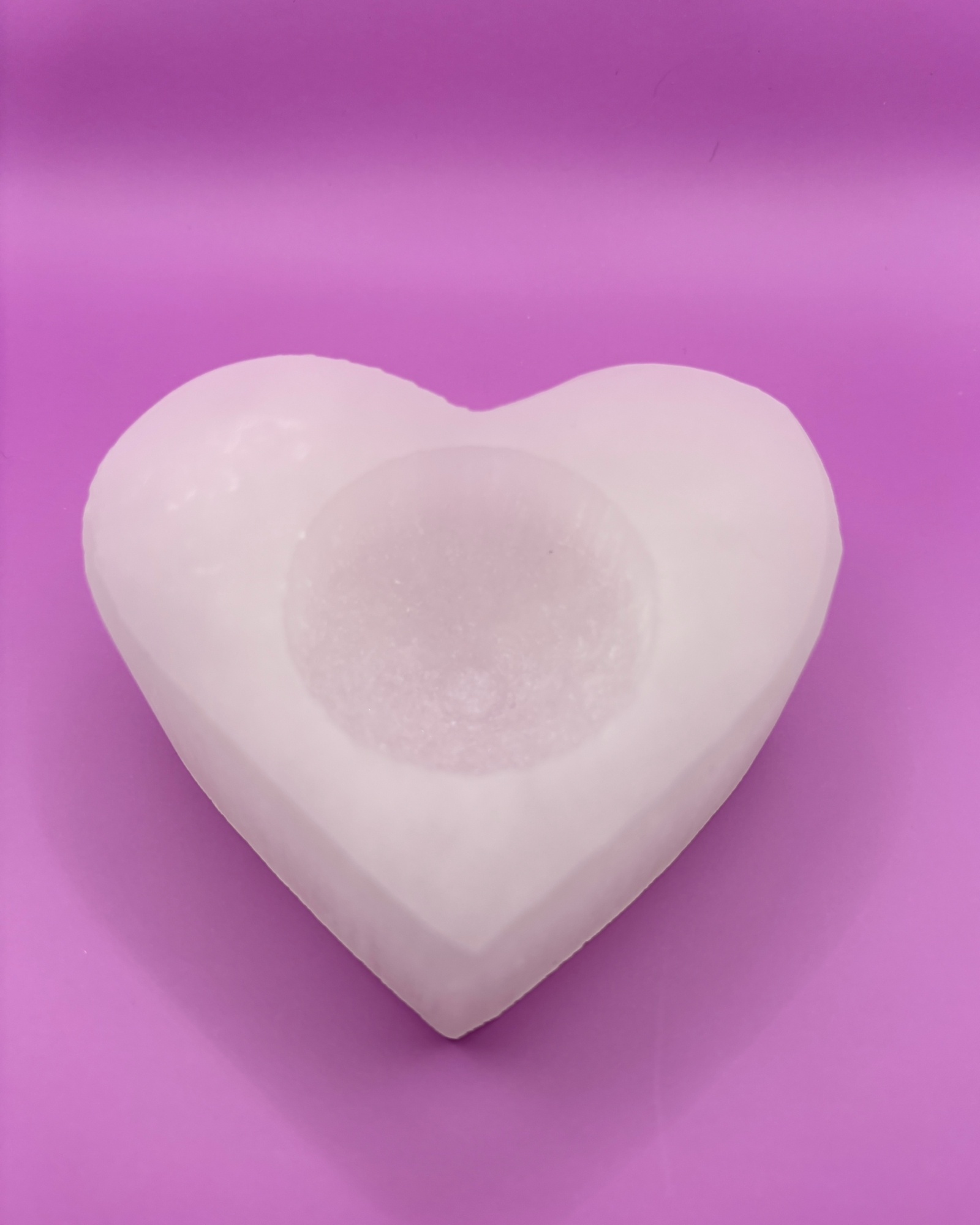 Incorporate this Selenite Heart Shaped Candle Holder into your sacred space, inviting a warm and serene energy that supports your spiritual journey and self-care practices.