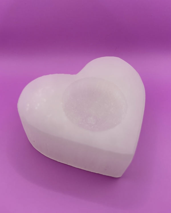 Incorporate this Selenite Heart Shaped Candle Holder into your sacred space, inviting a warm and serene energy that supports your spiritual journey and self-care practices.