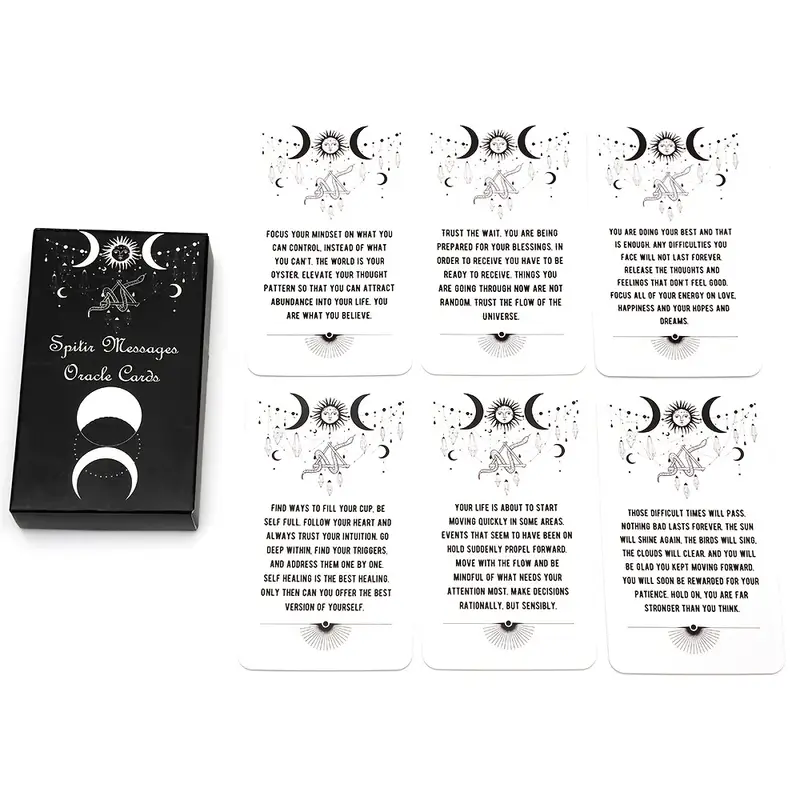 The Spirit Messages Oracle Cards – the deck of 54 cards with spirit messages (no guidebook needed), it’s a perfect tool to get in touch with your spirit guides.